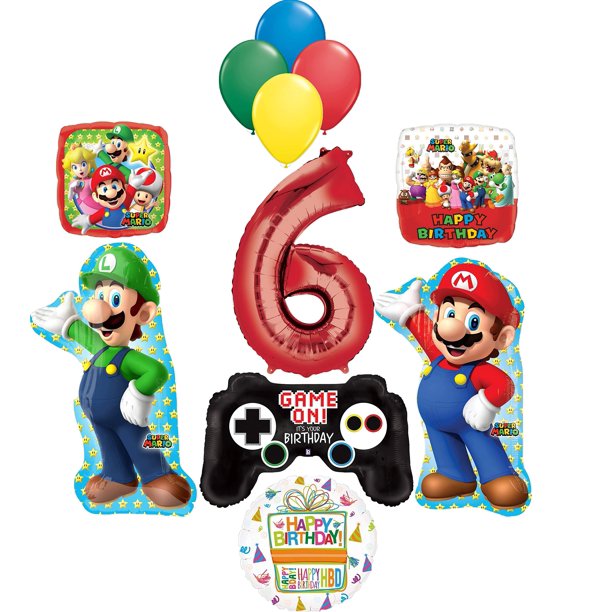 Super Mario Brothers Party Supplies 6th Birthday Balloon Bouquet ...